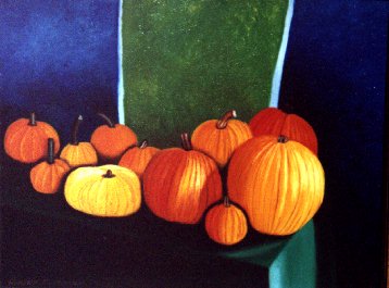 "Pumpkins At A Farm Stand" Oil on canvas
